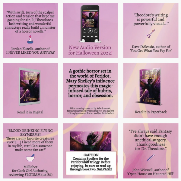 This week I am delighted to refresh Hunger and the Green a touch by releasing a long-overdue audio edition, performed by the mighty Jenn Dupree. If you thought this classic tale of hubris on the part of someone who creates a monster that could bowl them over in a heartbeat couldn't get any more harrowing, just wait til you hear Jenn's performance. Her Zhook just chills to the core!